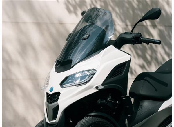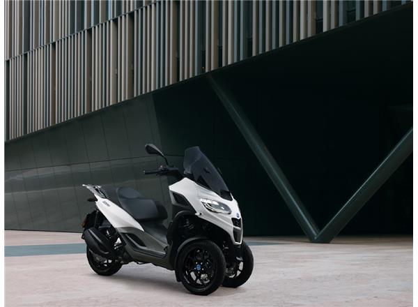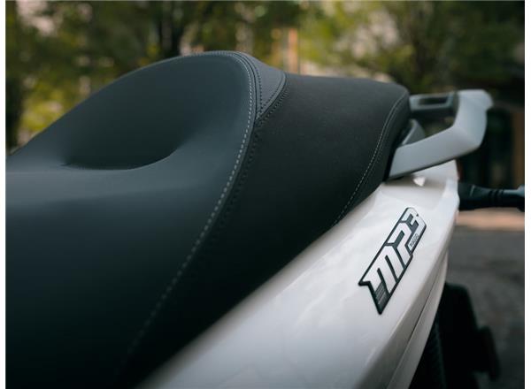 The Piaggio MP3 310, which can be ridden with a standard car licence, makes an impact with its bold, dynamic style, inspired by the latest trends in automotive design. Metallic grey satin-finish details showcase the bike's fluid lines while the seat features grey textures and contrasting grey stitching to match the finishes. The smoked windshield comes with side deflectors for additional protection and comfort and the sleek tailpiece completes the modern, elegant design.