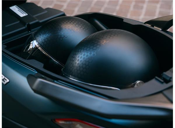 The Piaggio MP3 530 Exclusive's pride and joy is its impressive technological package, brimming with features such as a 7” TFT display with Piaggio MIA connectivity, cruise control and reverse gear with rear camera for easier parking. The futuristic automotive-derived ARAS (Advanced Rider Assistance System) aids riding and ups safety by displaying a range of functions including potentially dangerous situations. On top of all this is the exceptionally practical keyless system, which allows you to turn on the ignition and open up storage compartments without having to insert the key.