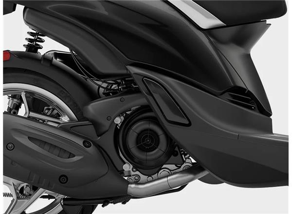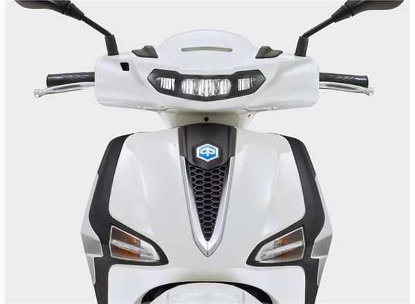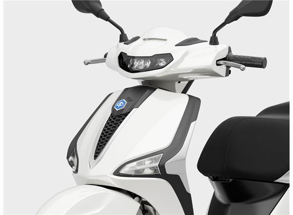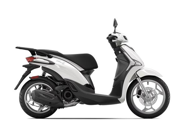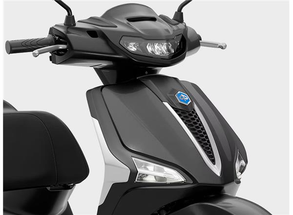 The Piaggio Liberty's refined, elegant design is immediately eye catching, with its central tie element which features a honeycomb grille a mark of the Piaggio family. The compact, dynamic lines strike a perfect balance between the robust front end and sleek tail where an aluminium luggage rack extends the silhouette and adds a touch of class. Matt-black details on the mirrors, exhaust and luggage rack complement the satin finish of the wheels, logo and indicators to give the Piaggio Liberty a modern, sophisticated aesthetic.
